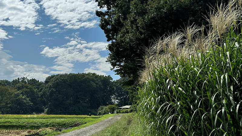 秋風が吹き始めると那須の空は高くなる。黄金の国ジパングを思わせるように稲穂が波打つ。畦道にコスモスが咲き野面を彩る。にぎやかだ。